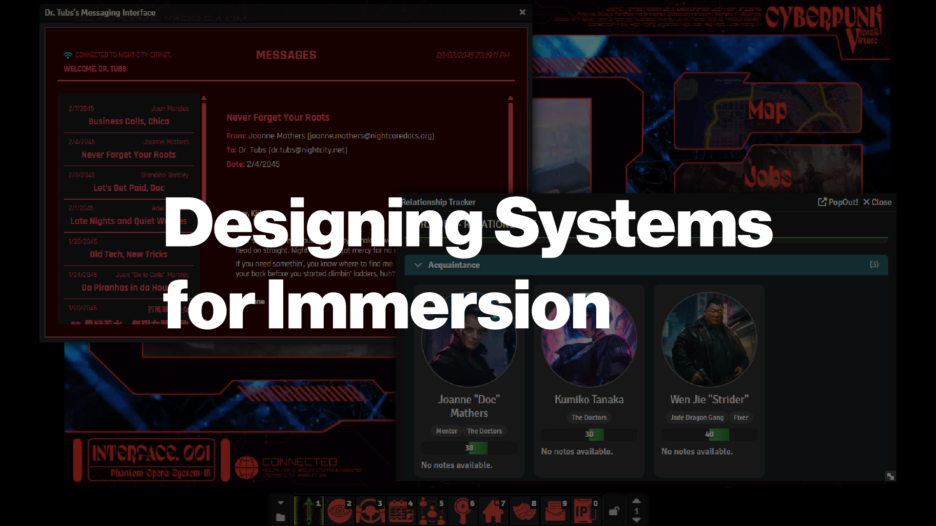 - Adding flavor and character through interfaces that reflect the tone of the setting